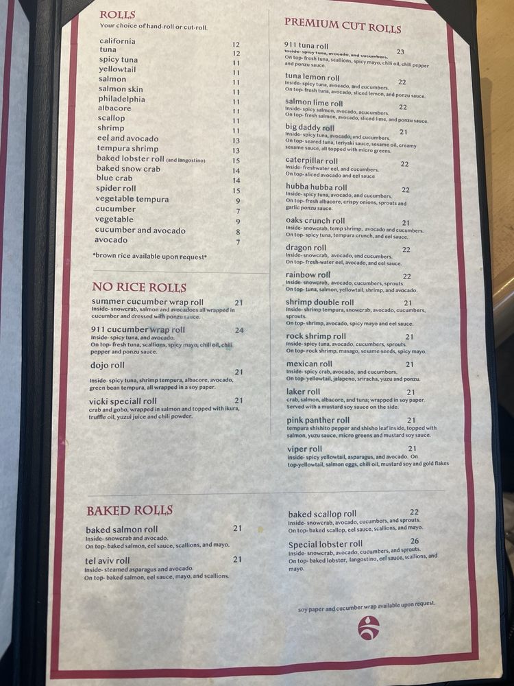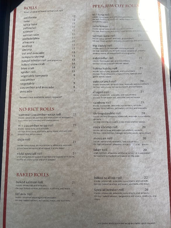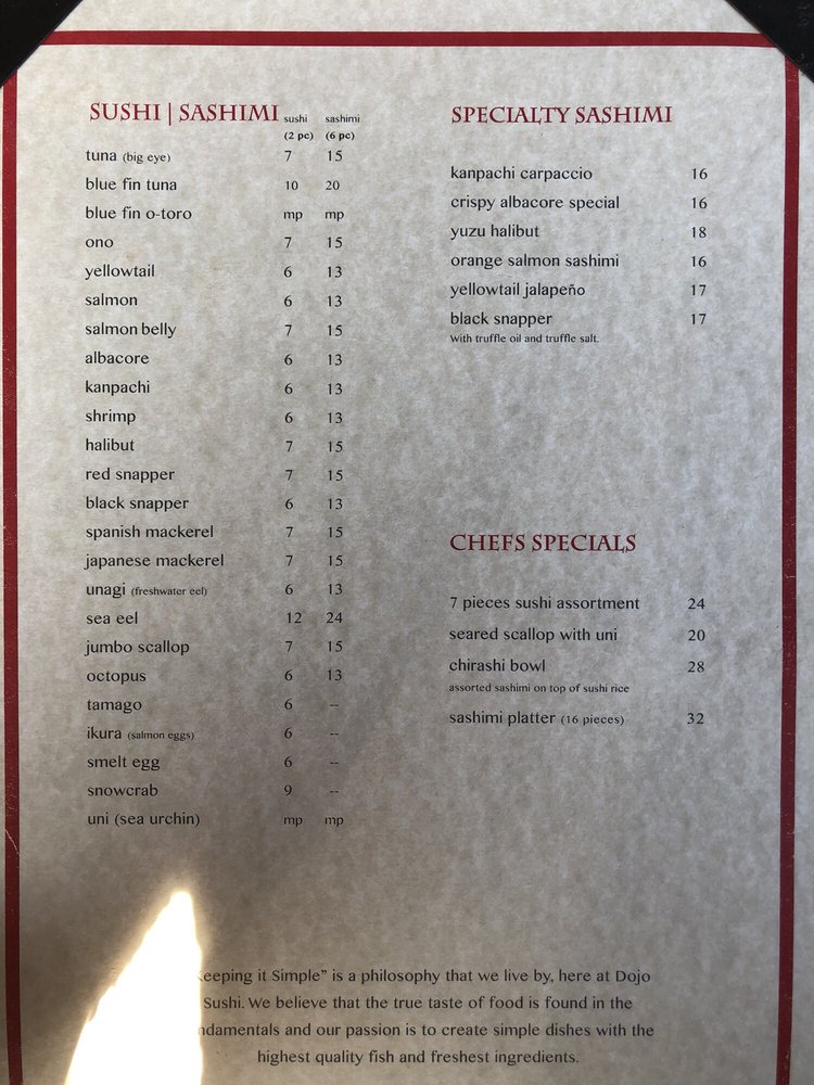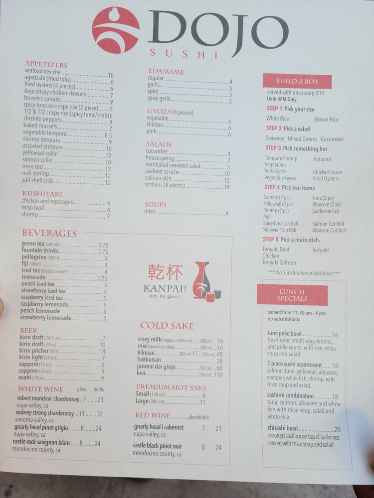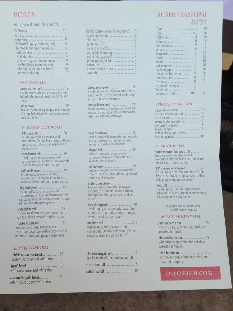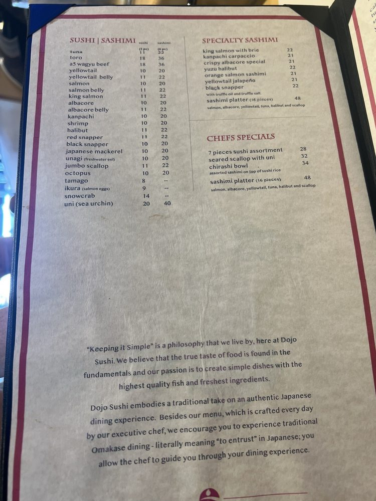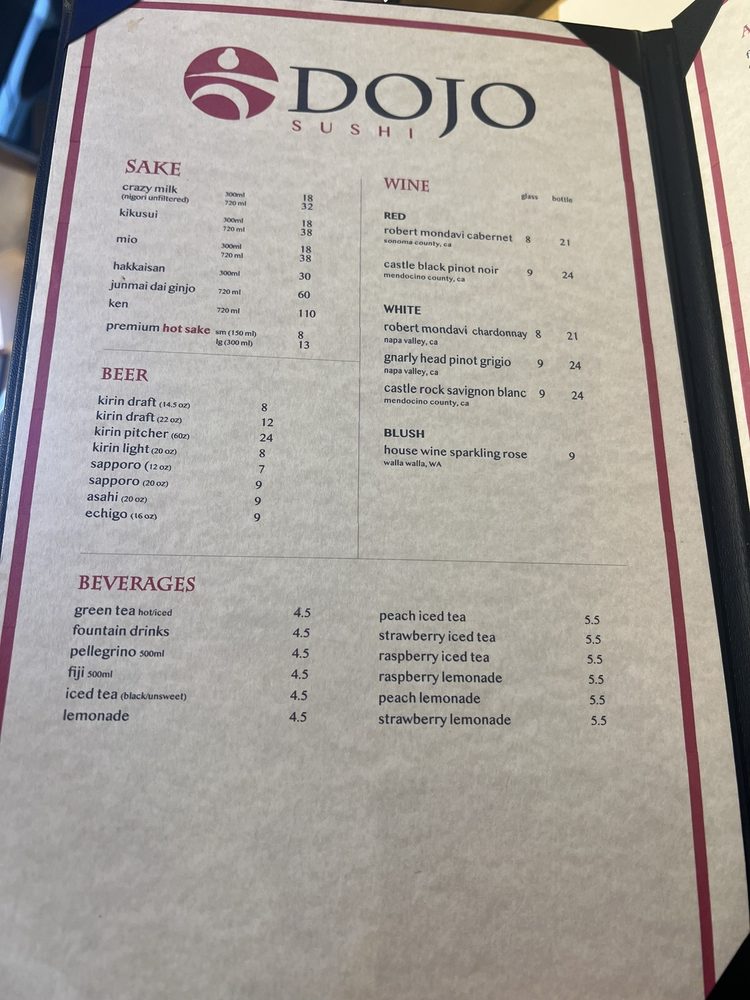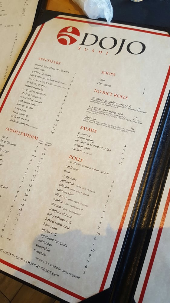 Dojo Sushi Menu